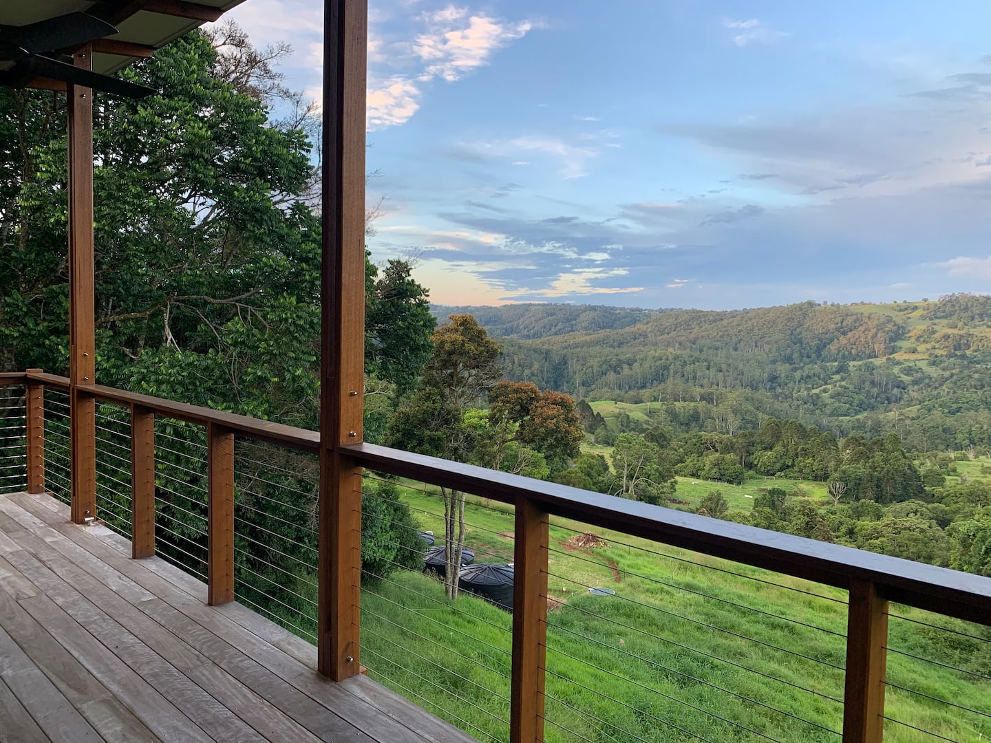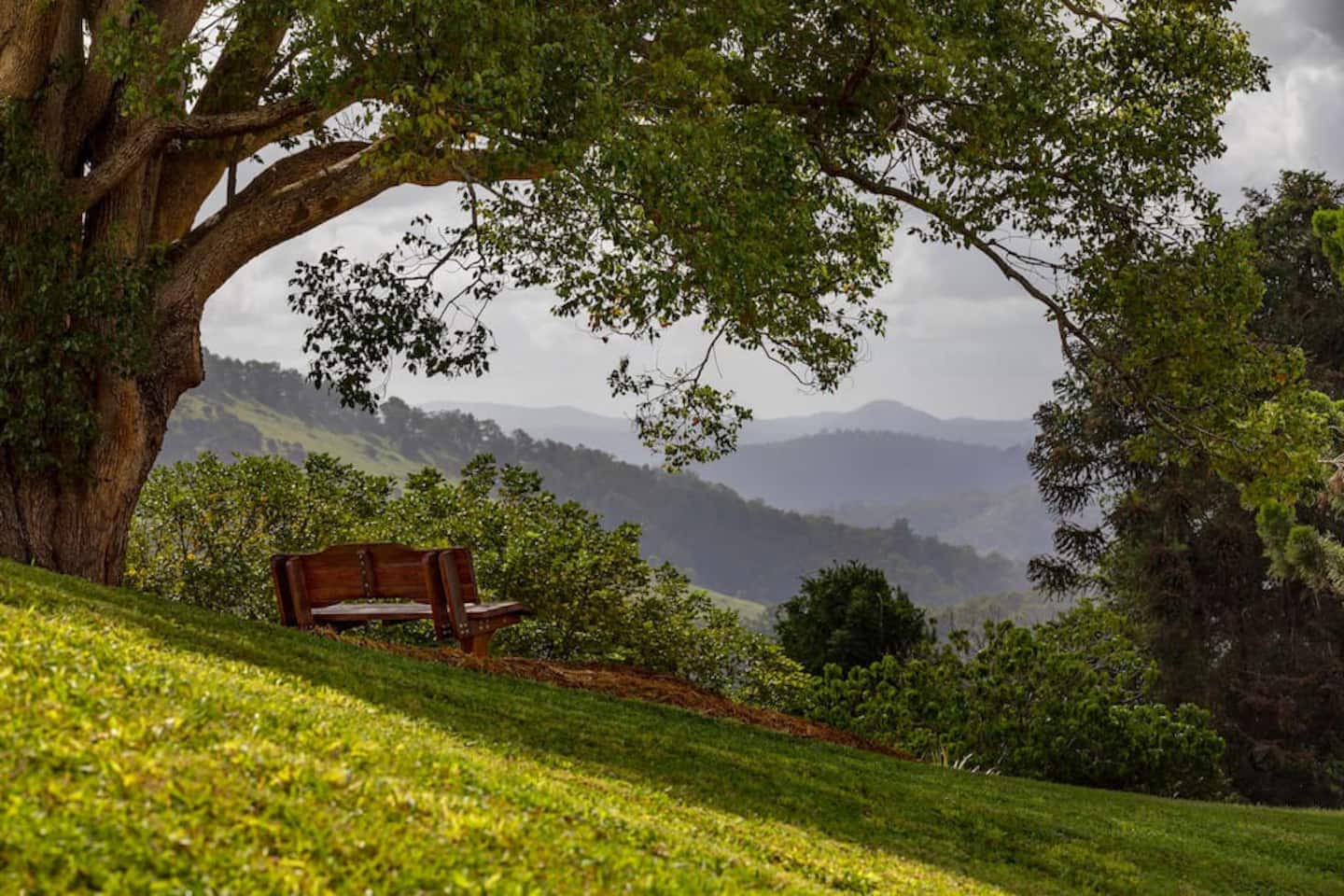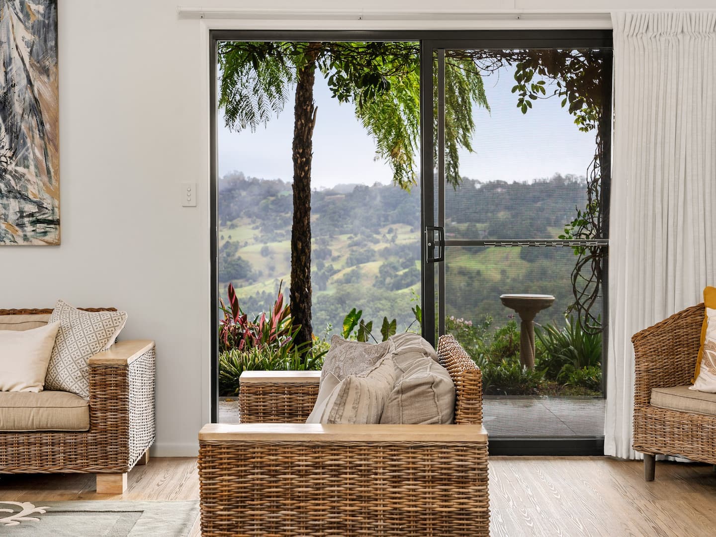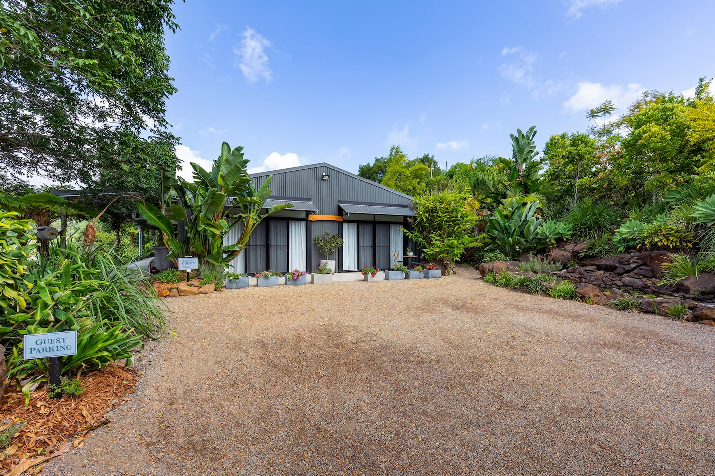 Figtrees on Watson is located only 6 minutes from Maleny in the peaceful Reesville area. The property has two short stay villas – Birdsong and Betharam (and Betharam Plus provides extra bedrooms/space) and is beautifully positioned on a ridge with panoramic views across the Conondale Valley. It is set back and hidden from the road in a tranquil setting with lush established gardens and natural rock features. The Betharam high raked ceilings, glass doors and wide verandas and the uniquely positioned Birdsong villa provide a bright and airy setting to sit back and take in the views and sounds of nature.