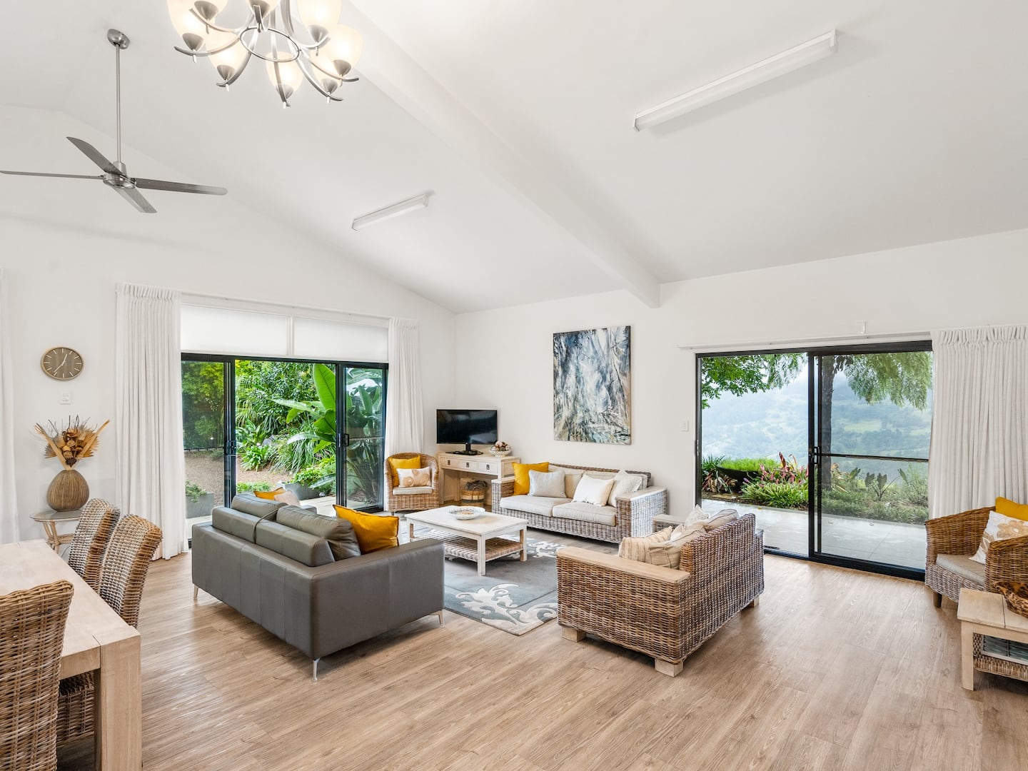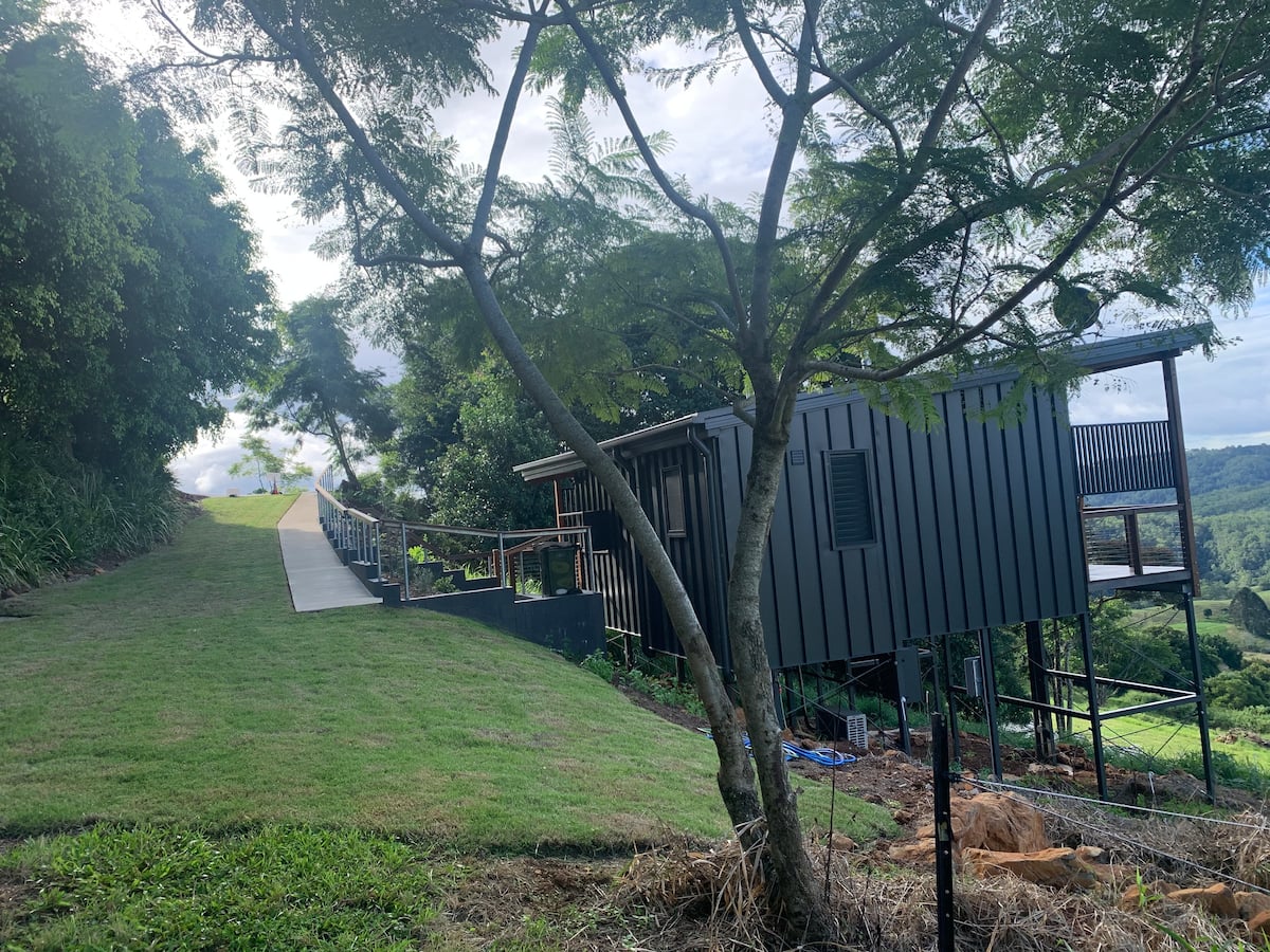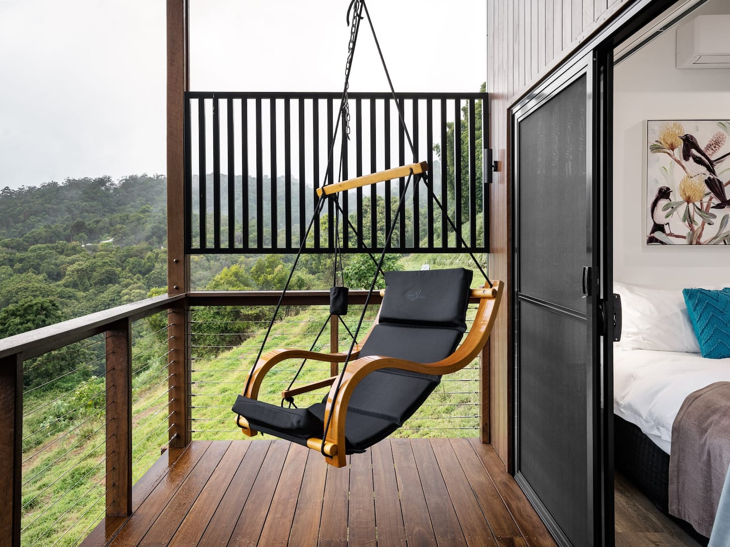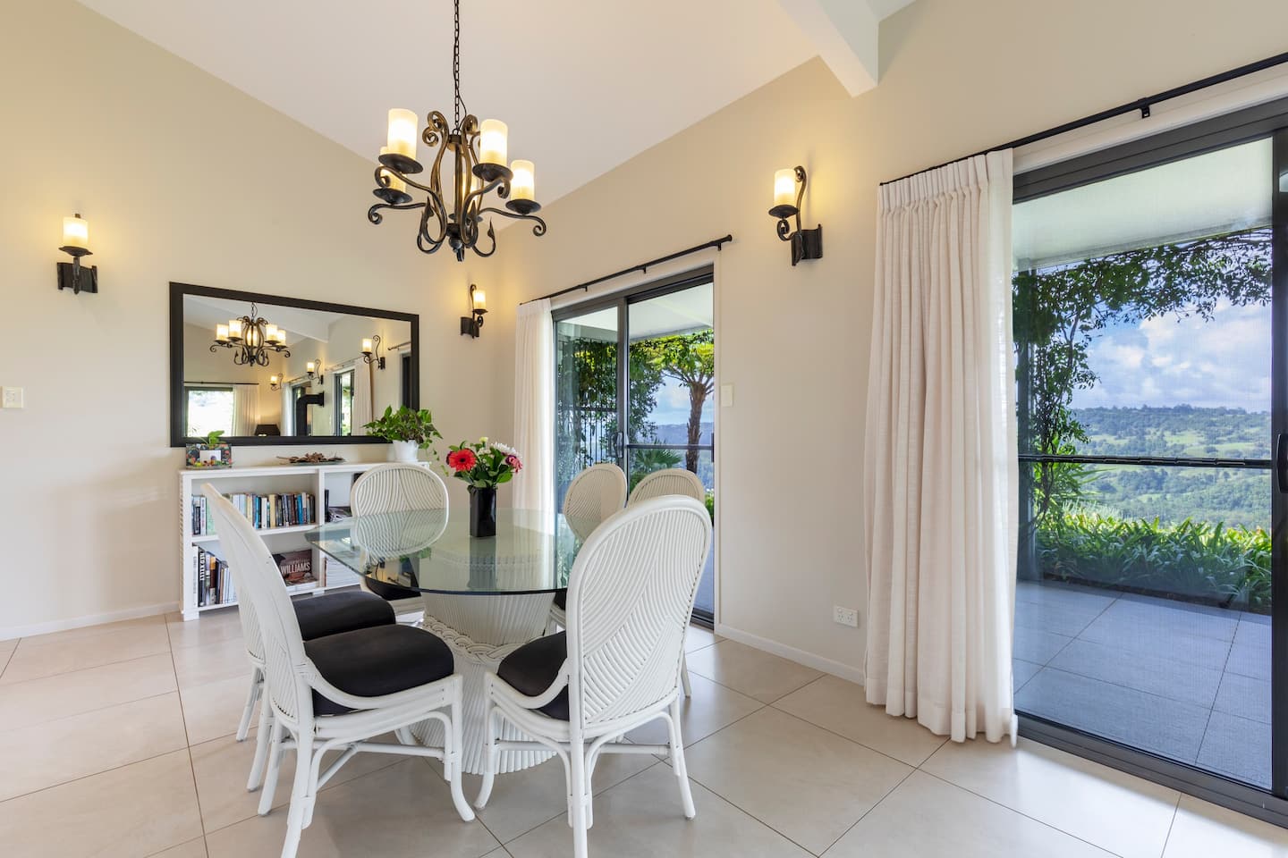 Figtrees on Watson is located only 6 minutes from Maleny in the peaceful Reesville area. The property has two short stay villas – Birdsong and Betharam (and Betharam Plus provides extra bedrooms/space) and is beautifully positioned on a ridge with panoramic views across the Conondale Valley. It is set back and hidden from the road in a tranquil setting with lush established gardens and natural rock features. The Betharam high raked ceilings, glass doors and wide verandas and the uniquely positioned Birdsong villa provide a bright and airy setting to sit back and take in the views and sounds of nature.