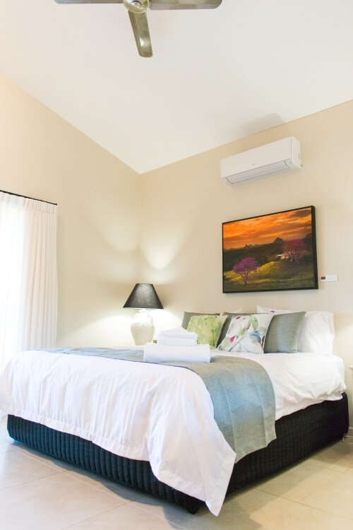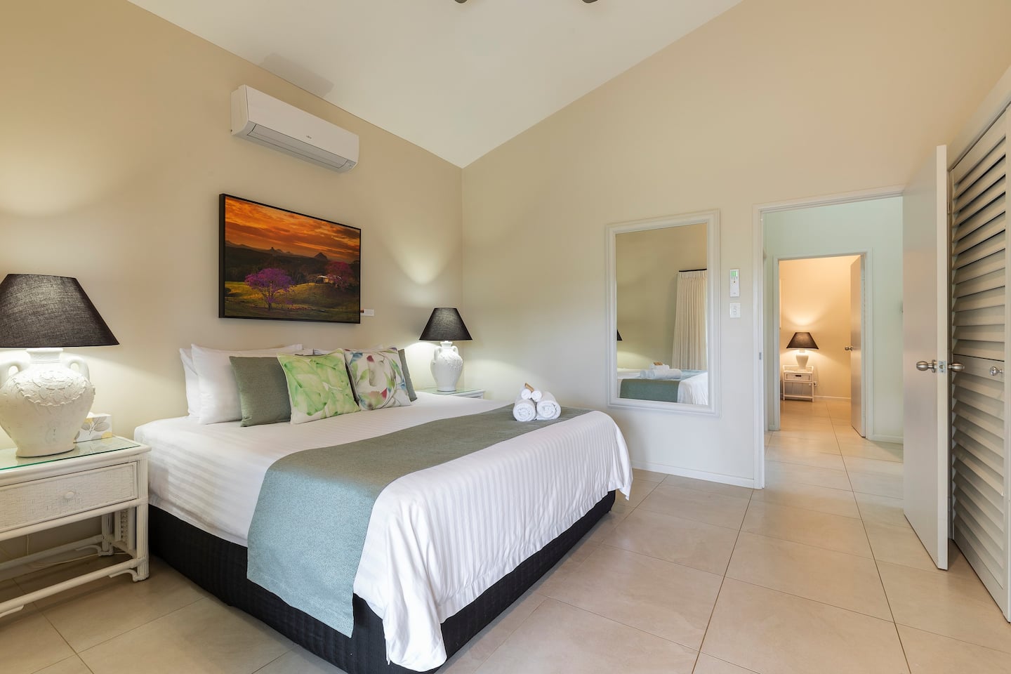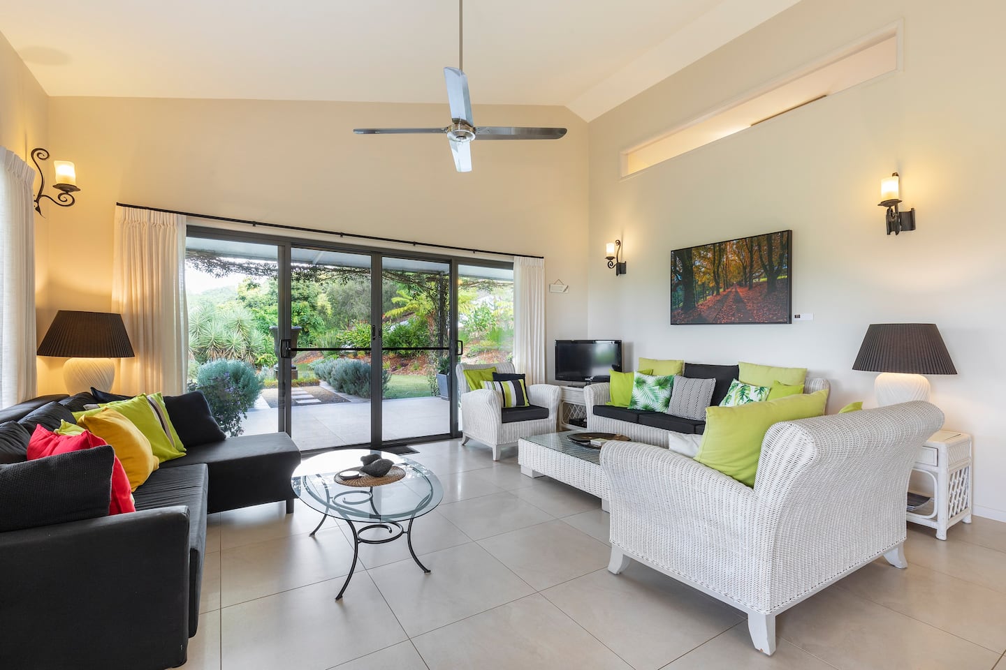 The property is set on 12 acres (not all accessible) and all our guests can enjoy the common-area landscaped gardens, walking paths and lush grassed hills. The layout of the villas and surrounding areas have been thoughtfully designed to ensure our guests have total privacy and a peaceful and tranquil setting is assured throughout your stay.