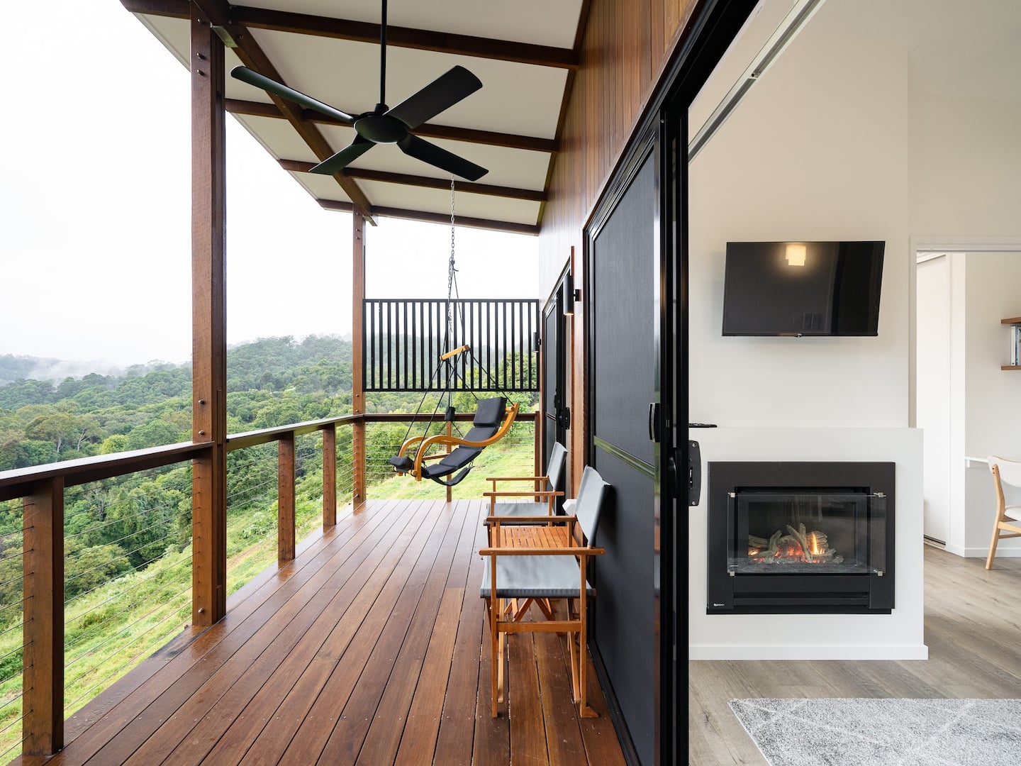 It is positioned on a ridge with a bright and airy balcony and swing chair to sit back and take in the views and sounds of nature. Quality bedding and linen is used throughout and toiletries are also provided.