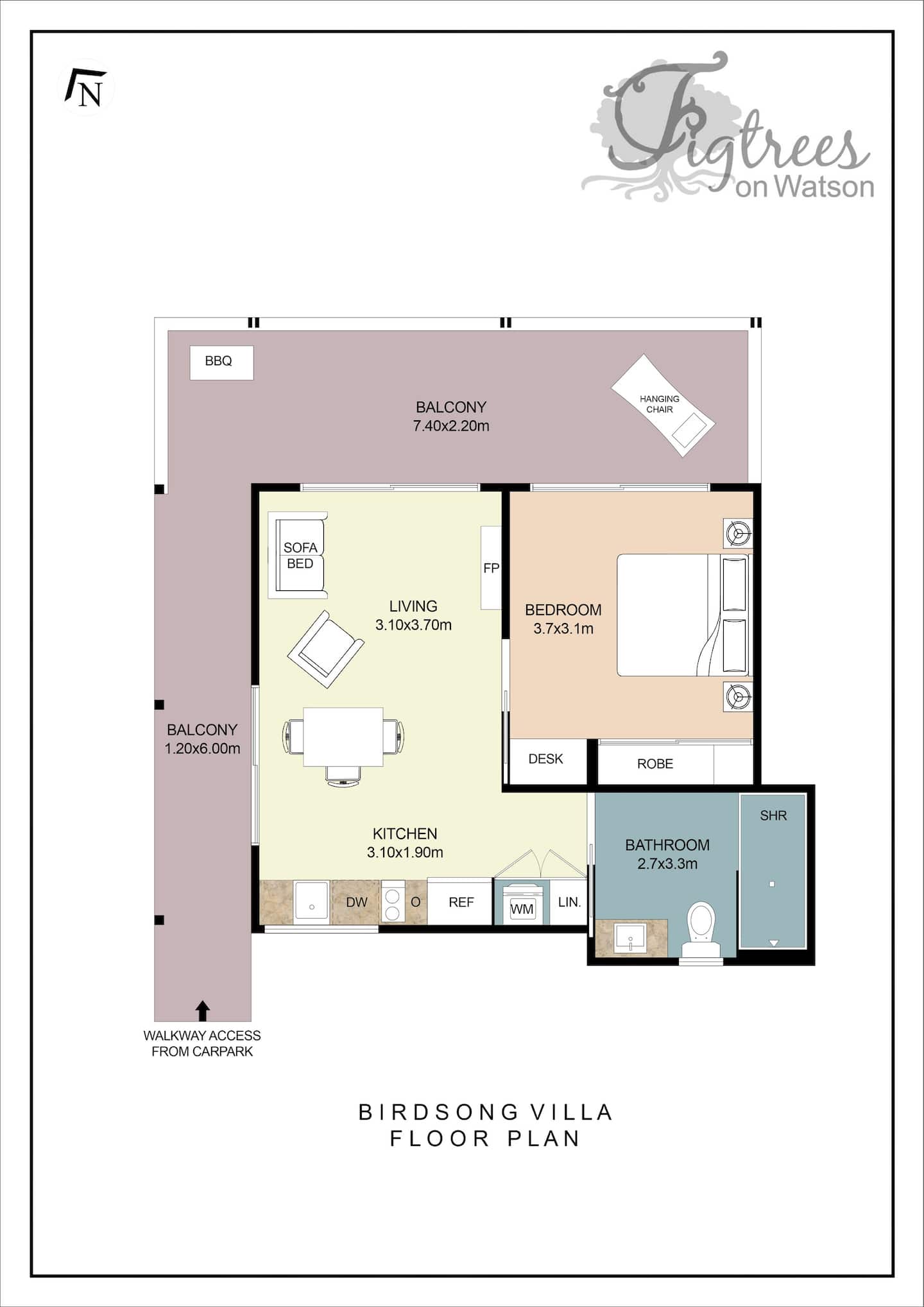 Birdsong  (at Figtrees on Watson) is a purpose architect designed fully self-contained cottage for use by our short stay guests. It is on the same property as our very popular Betharam Villa (see Figtrees on Watson listing for photos and information about this beautiful property).